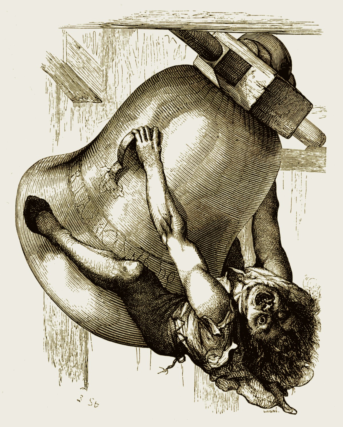Er tätschelte sie zärtlich mit der Hand. Einer Spinne gleich lauerte er seiner Marie auf und warf sich über das erzene Ungetüm. Quasi-modo schrie; die ungeheure Glocke schnaubte unter ihm. Das war keine Glocke, kein Quasi-modo mehr; das war ein Traum, ein Wirbel, ein Sturm; ein Dämon, der auf einem fliegenden Ungeheuer hockte; ein seltsa-mer Zentaur, halb Mensch, halb Glocke. | Im brennenden Moskau verlor Napoleon und sein Heer die Entscheidungsschlacht seines Russland-Feldzuges, wie uns Peter Ilyich Tschaikovsky in seiner Ouvertüre 1812 von Glocken begleitet mit martialischen Klängen erzählt. |